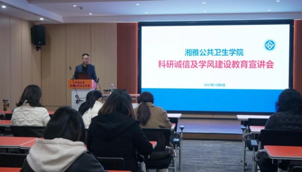2023年12月6日上午,yl7703永利官网科研诚信及学风建设教育宣讲会在学院学术报告厅顺利进行。本次宣讲会面向全院师生,线下线上同步进行,参与人数达200余人,yl7703永利官网副院长秦家碧教授为本次宣讲会主讲人。